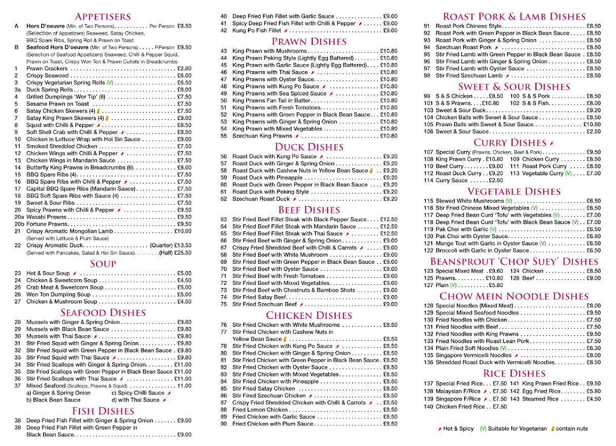 Highlights include a variety of bean sprout 'Chop Suey' dishes, such as tender cuts of chicken, beef, or mixed meats cooked with fresh vegetables. The noodle selections offer flavorful options like special chow mein or fried noodles with chicken or beef, perfect for those craving something warm and satisfying. Chicken dishes with subtle twists, including stir-fried varieties with white mushrooms or cashew nuts in yellow bean sauce, fit easily into a comforting meal experience.